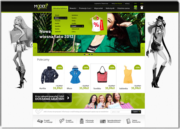 Moodo to sklep skierowany do kobiet ceniących sobie młodzieżowy oraz modny styl ubierania. Naszą rolą w projekcie było zaprojektowanie i zrealizowanie aplikacji e-commerce zapewniającej nowoczesne i w pełni automatyczne mechanizmy promocji.