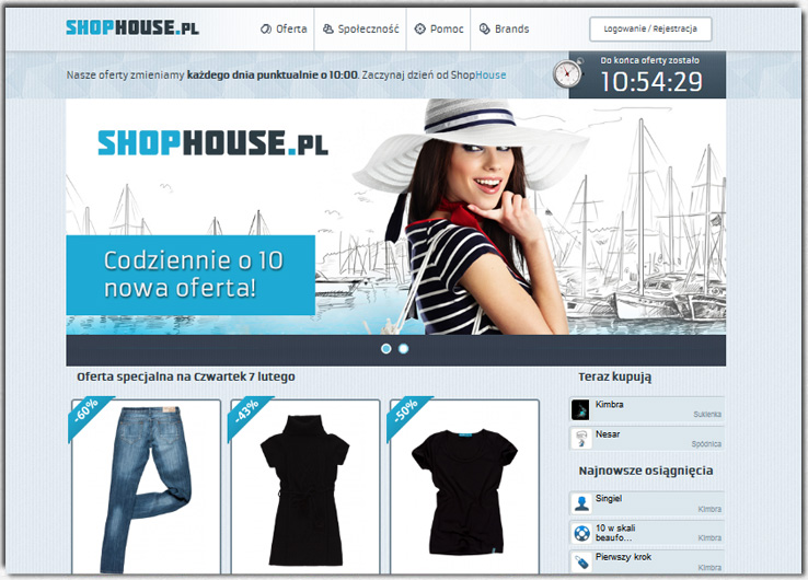 Shophouse jest sklepem opartym o jednodniowe oferty outletowe połączone z elementami społecznościowymi. Pomysł, projekt oraz realizacja aplikacji w tym projekcie to autorska praca naszego zespołu.